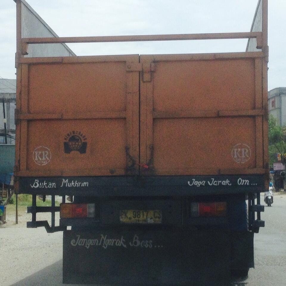 Makanya, jaga jarak aman dan pastikan tidak melakukan manuver yang membuat kendaraan autofamily tidak terlihat oleh pengemudi truk tulisan di truk. Mahardika on twitter jaga jarak om bukan mukhrim tulisan.